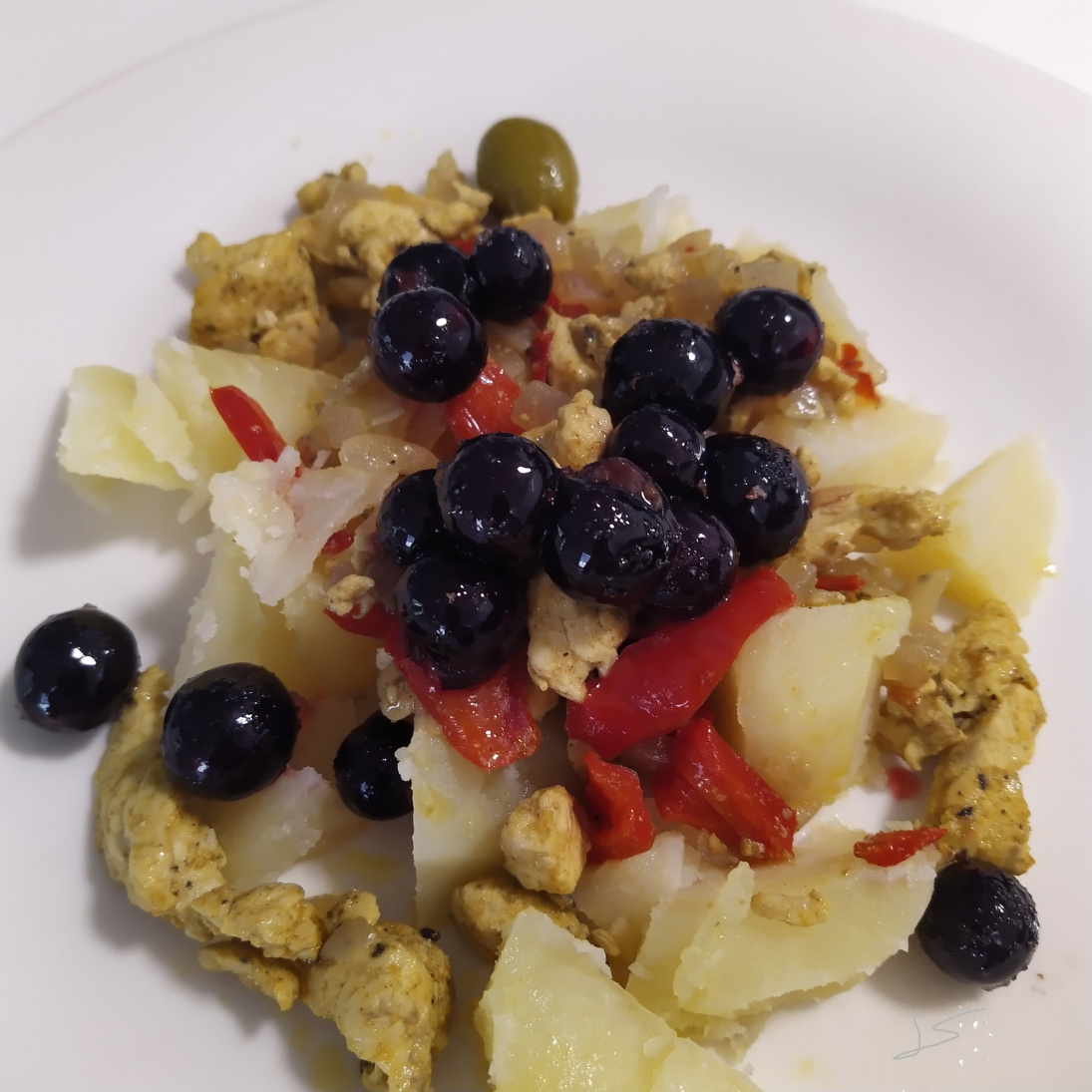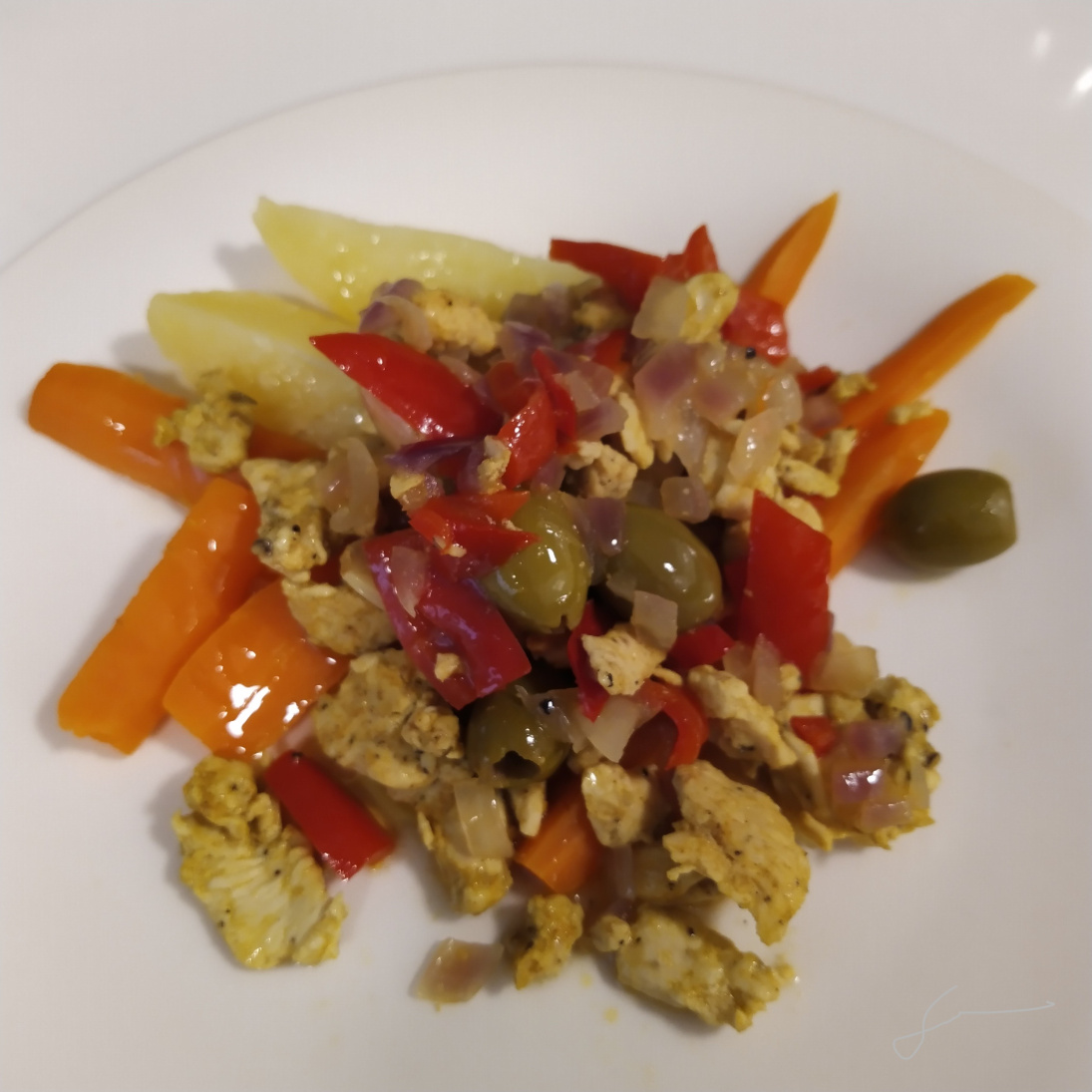 SiriSiri: "Tässä arkiversiossa on lisänä ainoastaan syksyn hyvät keitetyt perunat ja porkkanat, joiden päälle lisäsin vielä hyvää neitsytoliiviljyä."