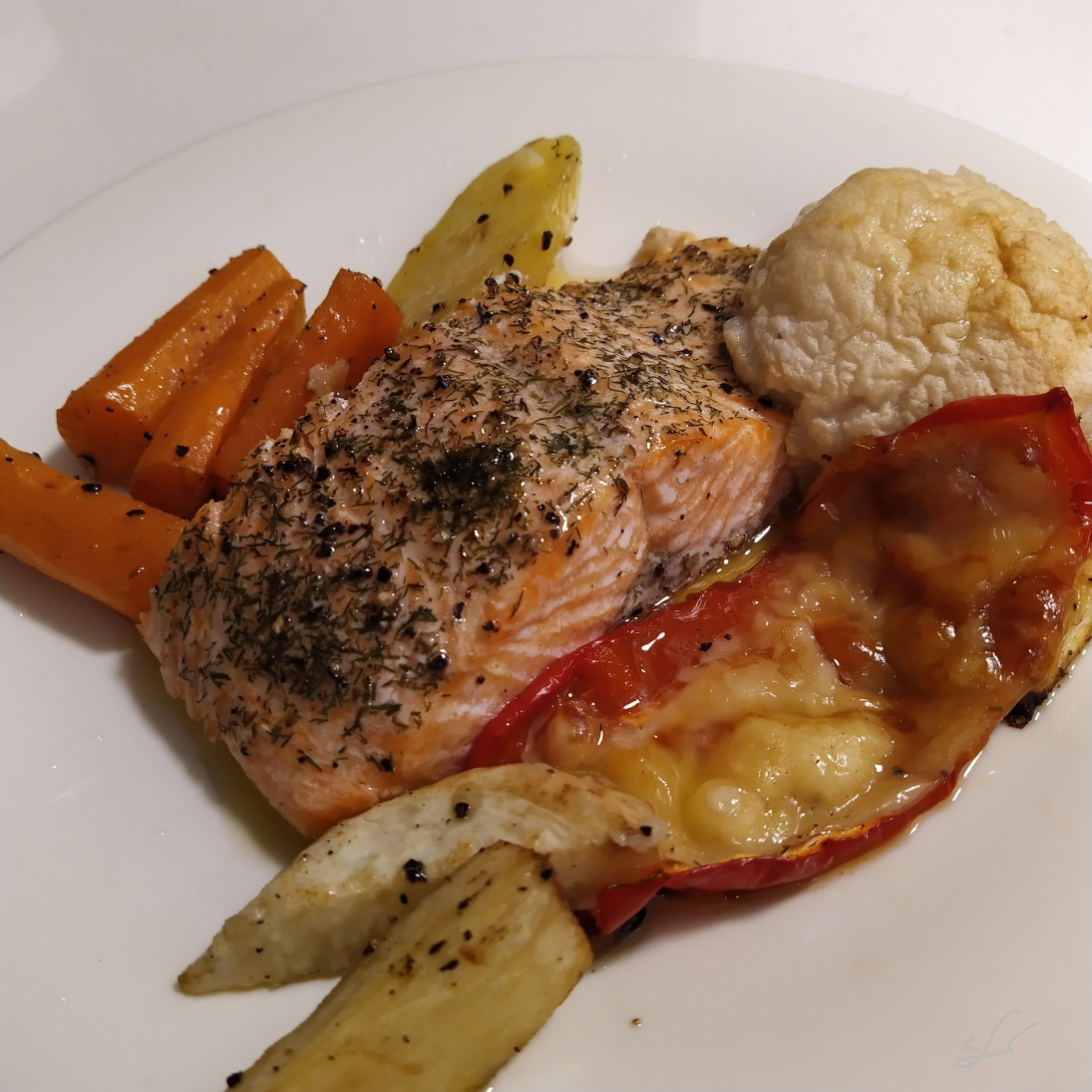 Extra neitsytoliiviöljy, mustapippuri, suola, tilli (yrttimausteita maun mukaan)