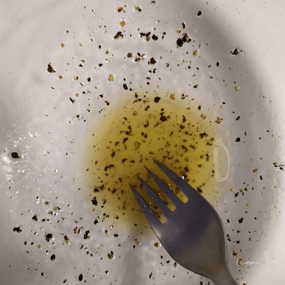 Extra neitsytoliiviöljy, Calvados, valkoviinietikka, mustapippuri