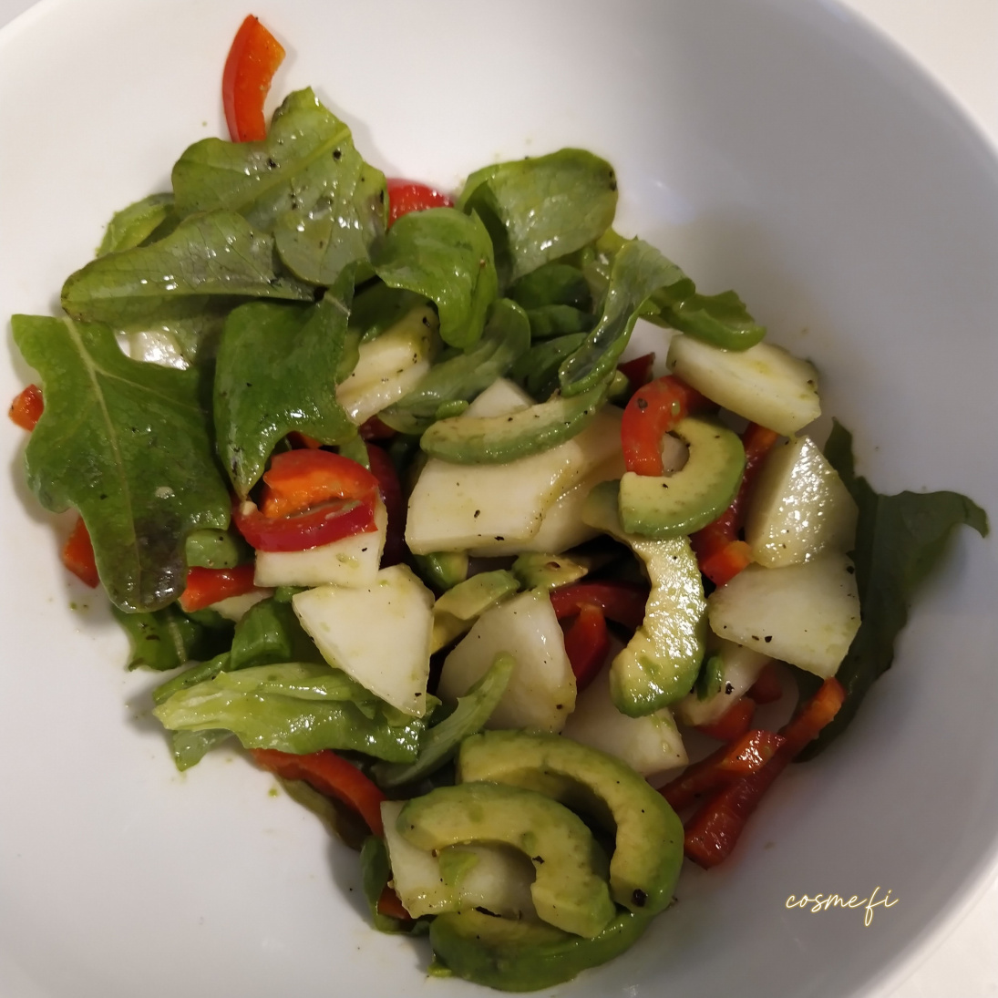 Ruustinnan salaatti, punainen paprika, avokado, hunajameloni
