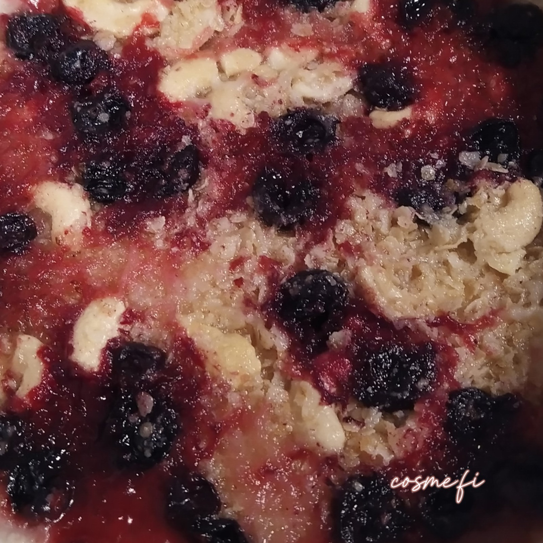 Rypsiöljy, tumma rommi, mantelijauho, vehnäjauho, kaurahiutale, mustat viinimarjat, pähkinät