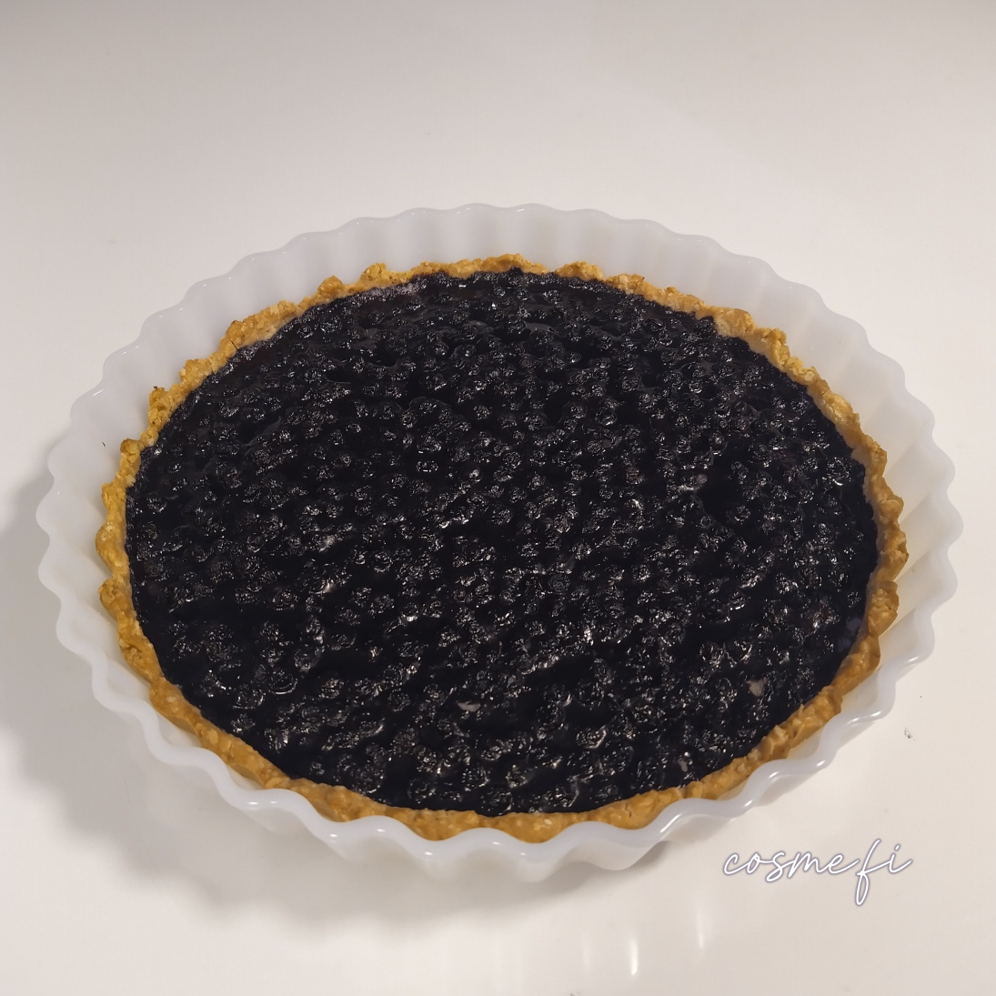 SiriSiri: "Jag glömde sockret i degen, så jag strödde det över bären. Till blåbärspaj vill jag inte ha något vitt extra. Bären blir lagom saftiga. Halva pajen gick åt direkt under hockeymatchen."