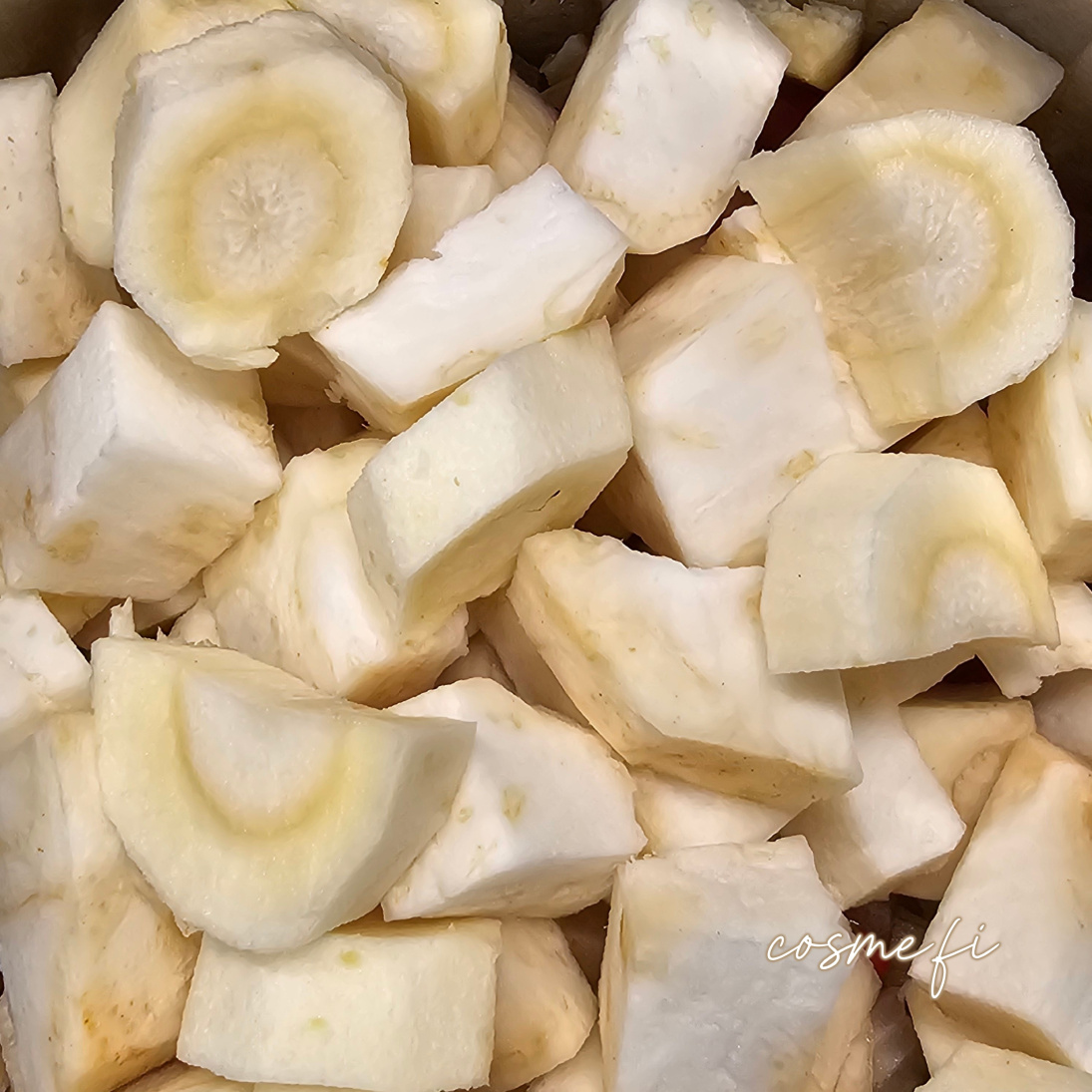 Juuriselleri sosekeiton runsaana ainesosana: