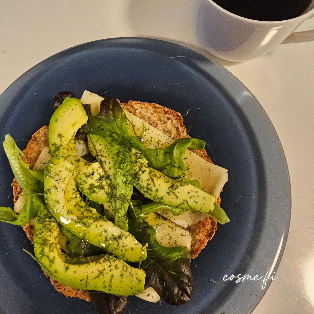 Aamiaisleipä - Extra neitsytoliiviöljy, tilli, avokado, salaatti, sitruuna